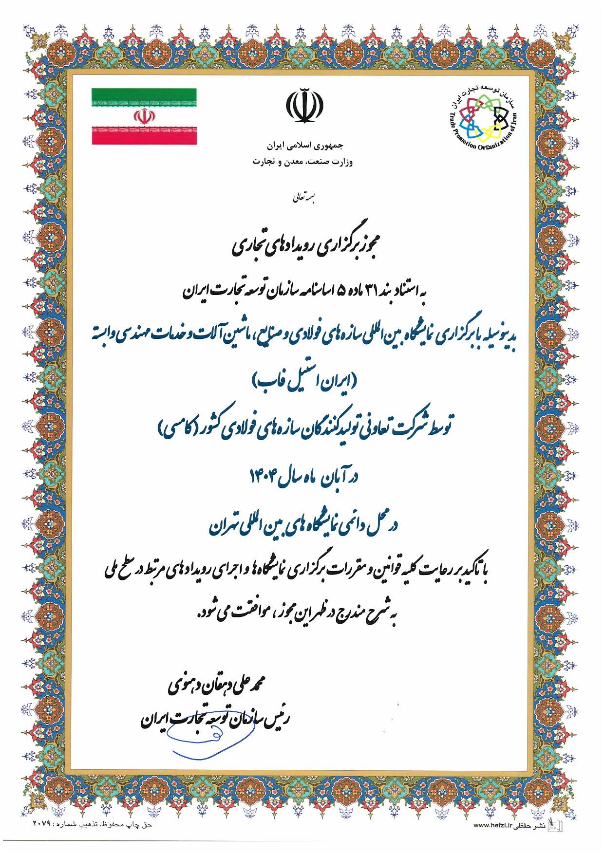 مجوز برگزاری نمایشگاه بین‌المللی سازه های فولادی و صنایع، ماشین‌آلات و خدمات مهندسی وابسته (ایران استیل فاب) در آبان‌ماه 1404