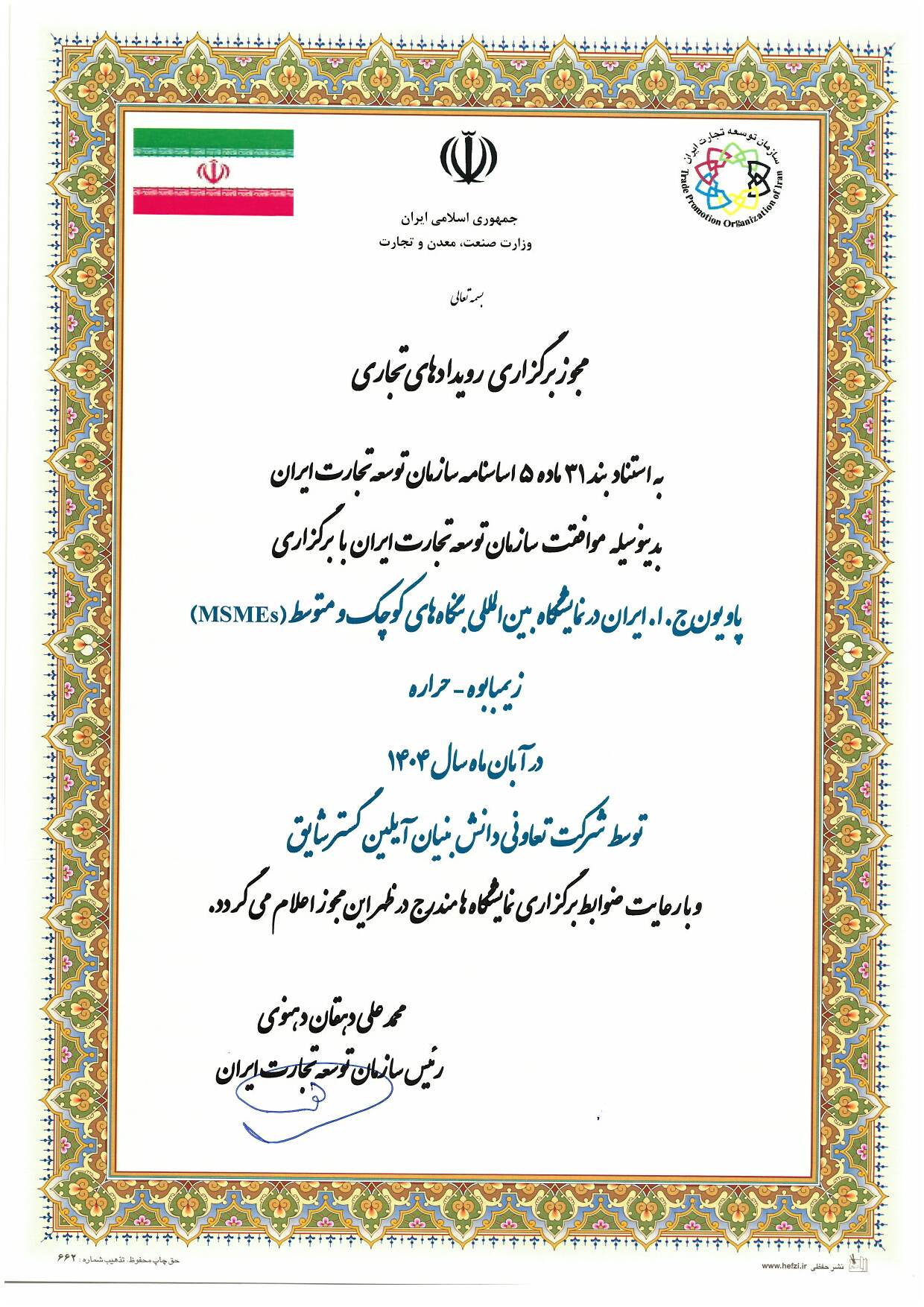 مجوز برگزاری پاویون جمهوری اسلامی ایران در نمایشگاه بین‌المللی بنگاه‌های کوچک و متوسط زیمباوه _ حراره در آبان‌ماه 1404