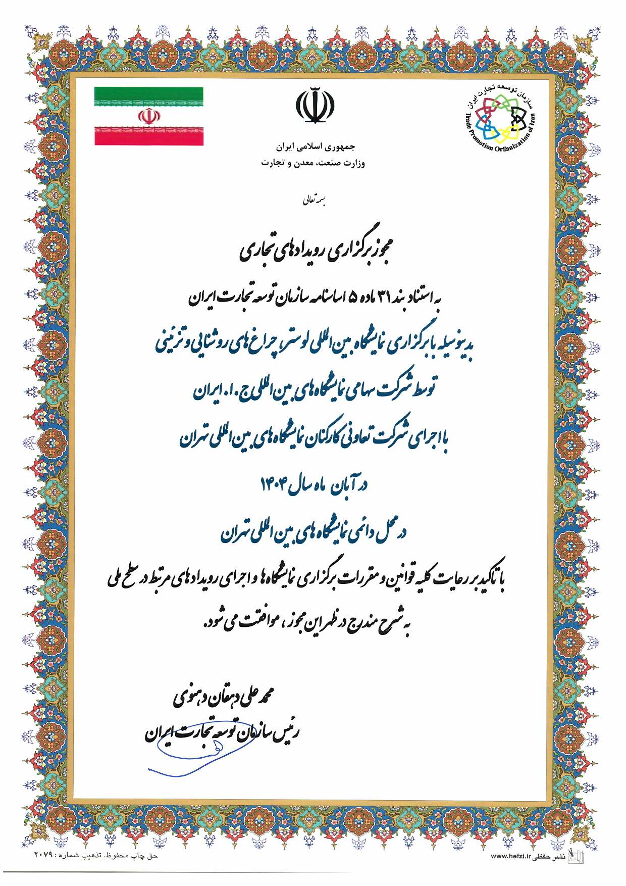 مجوز برگزاری نمایشگاه بین‌المللی لوستر، چراغ‌های روشنایی و تزئینی در آبان‌ماه 1404