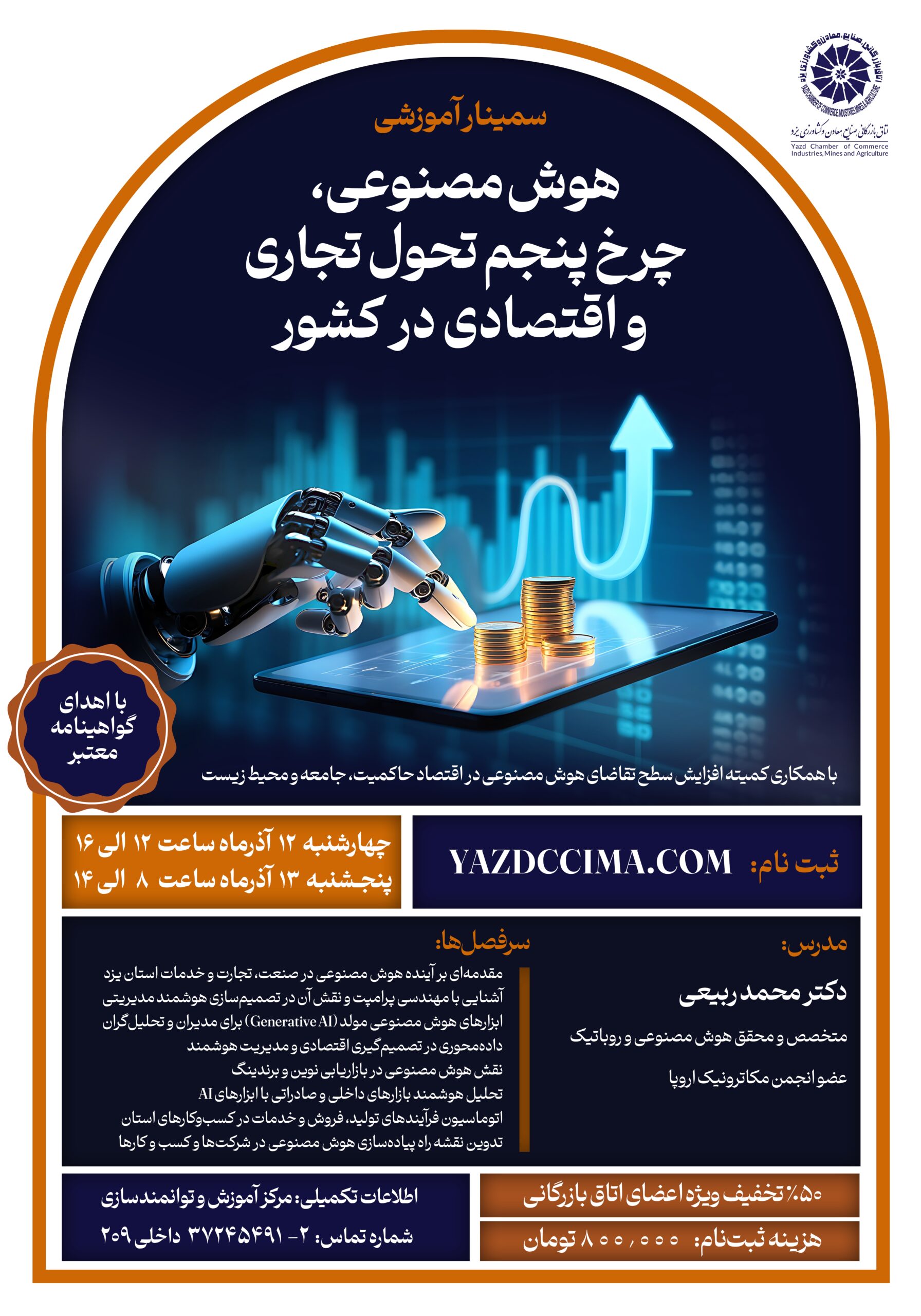 عنوان: “هوش مصنوعی، چرخ پنجم تحول تجاری و اقتصادی در کشور (استان یزد)“