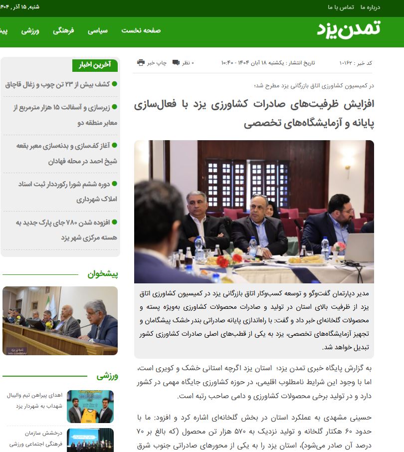 افزایش ظرفیتهای صادرات کشاورزی یزد با فعالسازی پایانه و آزمایشگاههای تخصصی