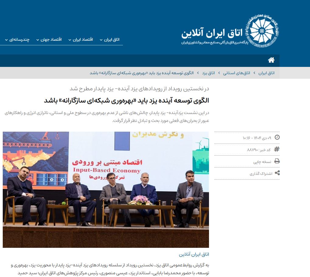 الگوی توسعه آینده یزد باید «بهرهوری شبکهای سازگارانه» باشد