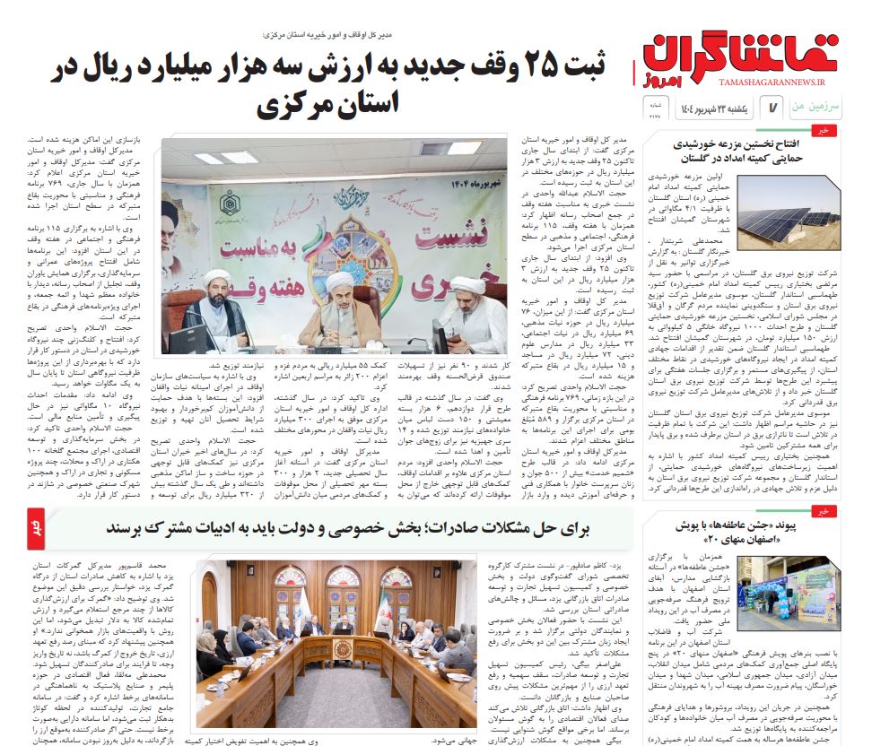 بریده جراید برای حل مشکل صادرات بخش خصوصی و دولت باید به ادبیات مشترک برسند تاریخ: 23 شهریور, 1404 12:56 محل انتشار: روزنامه تماشاگران گروه موضوعی: پیوست: تماشاگران