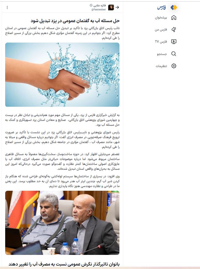 بریده جراید حل مسئله آب به گفتمان عمومی در یزد تبدیل شود تاریخ: 26 آبان, 1404 08:52 محل انتشار: خبرگزاری فارس گروه موضوعی: لینک مطلب: https://farsnews.ir/faezealaei/1763367267877690664