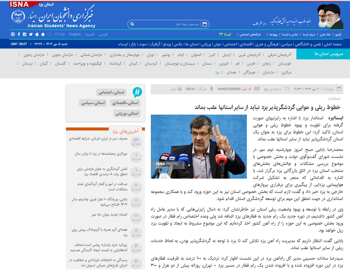 خطوط ریلی و هوایی گردشگرپذیر یزد نباید از سایر استانها عقب بماند