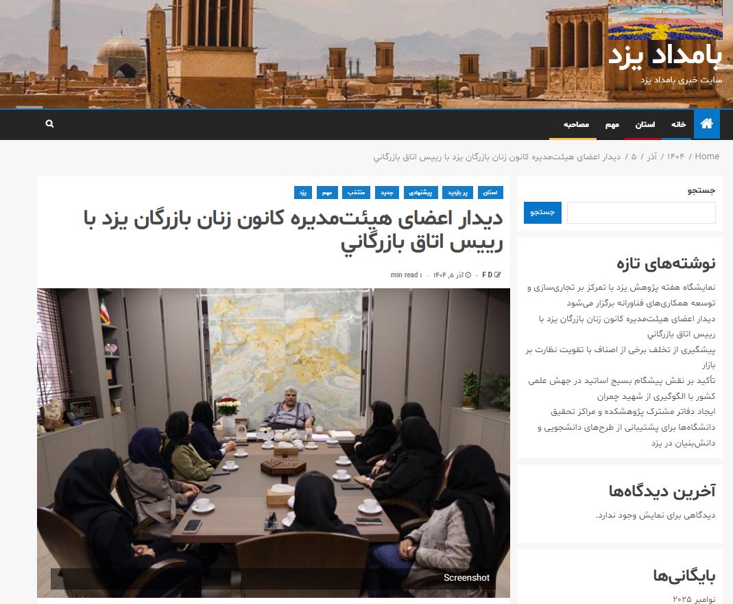 بریده جراید ديدار اعضای هیئتمدیره کانون زنان بازرگان يزد با رييس اتاق بازرگاني تاریخ: 5 آذر, 1404 07:39 محل انتشار: سایت بامداد یزد گروه موضوعی: لینک مطلب: https://bamdadeyazd.ir/2025/11/26/%d8%af%d9%8a%d8%af%d8%a7%d8%b1-%d8%a7%d8%b9%d8%b6%d8%a7%db%8c-%d9%87%db%8c%d8%a6%d8%aa%d9%85%d8%af%db%8c%d8%b1%d9%87-%da%a9%d8%a7%d9%86%d9%88%d9%86-%d8%b2%d9%86%d8%a7%d9%86-%d8%a8%d8%a7%d8%b2/