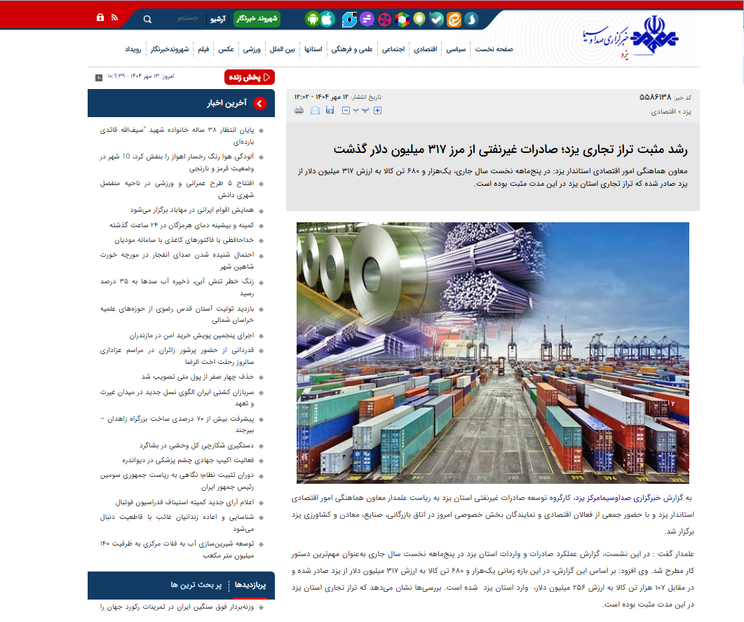 رشد مثبت تراز تجاری یزد؛ صادرات غیرنفتی از مرز ۳۱۷ میلیون دلار گذشت