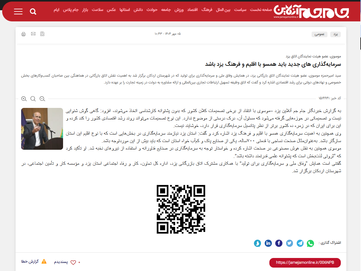 سرمایهگذاری های جدید باید همسو با اقلیم و فرهنگ یزد باشد