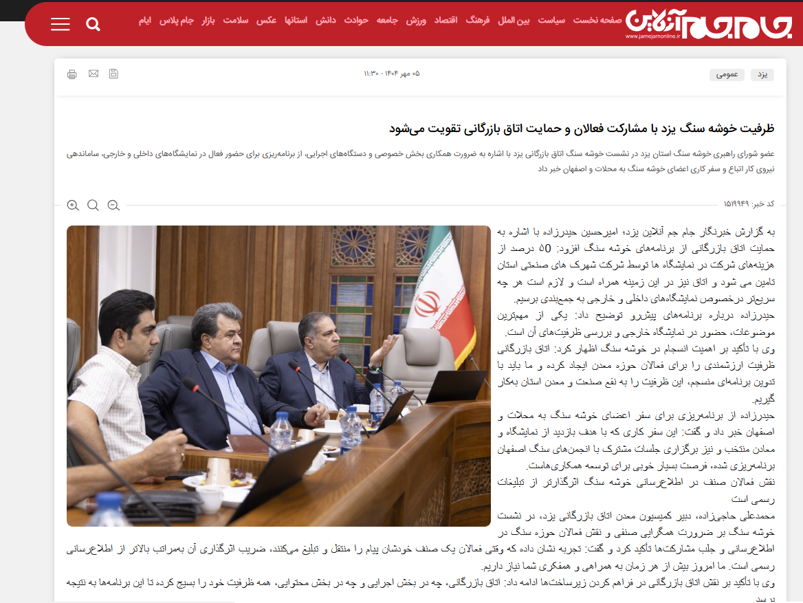 ظرفیت خوشه سنگ یزد با مشارکت فعالان و حمایت اتاق بازرگانی تقویت میشود